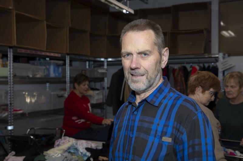 Störfin hóf hann í nóvember 2018 og þá voru flestir sjálfboðaliðarnir í fataflokkuninni þaulvanir og komu honum vel inn í verkefnin. Það þarf að sækja föt í móttökugámana, flokka allt og tína til það sem fer í endursölu í Rauða kross búðinni á Akureyri.