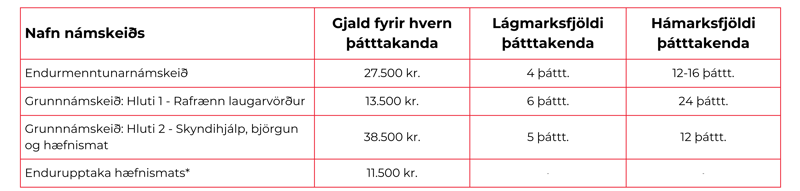 Verðskrá fyrir einstaka þátttakendur á námskeið haldin af Rauða krossinum.